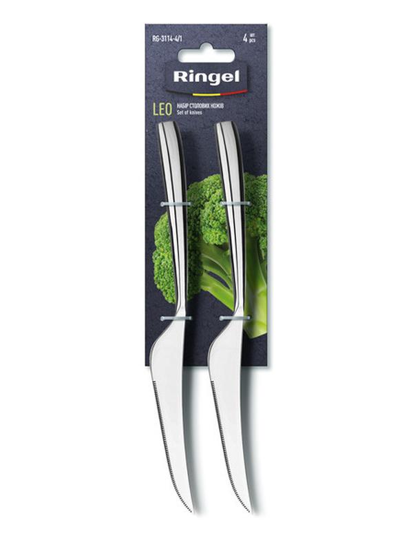 Набір столових ножів 4 шт Ringel Leo RG-3114-4/1 Характеристика: Кількість предметів: 4; Матеріал: нержавіюча сталь; Можна мити в посудомийній машині; Країна-виробник товару: фосфор