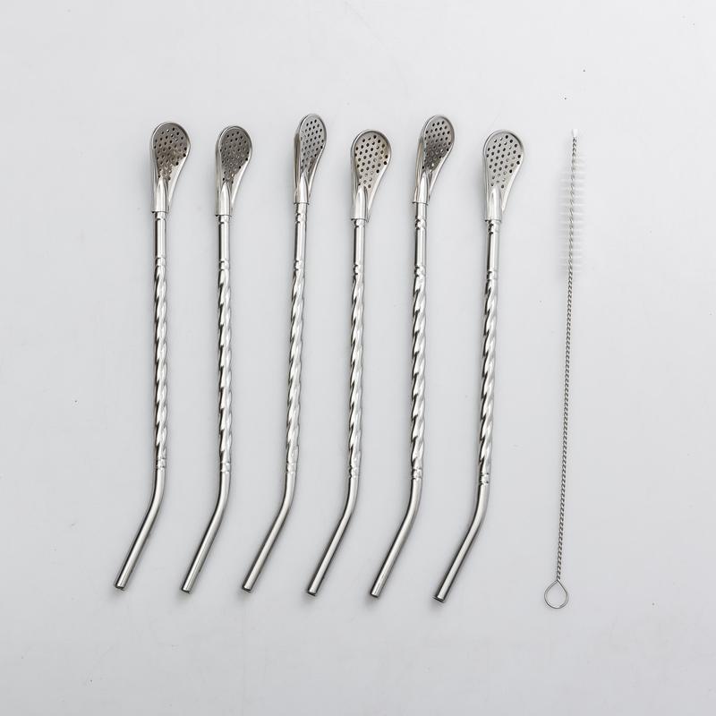Набір багаторазових ложок-трубочок 6 шт для напоїв 19.5 см зі щіткою для миття з нержавіюч...