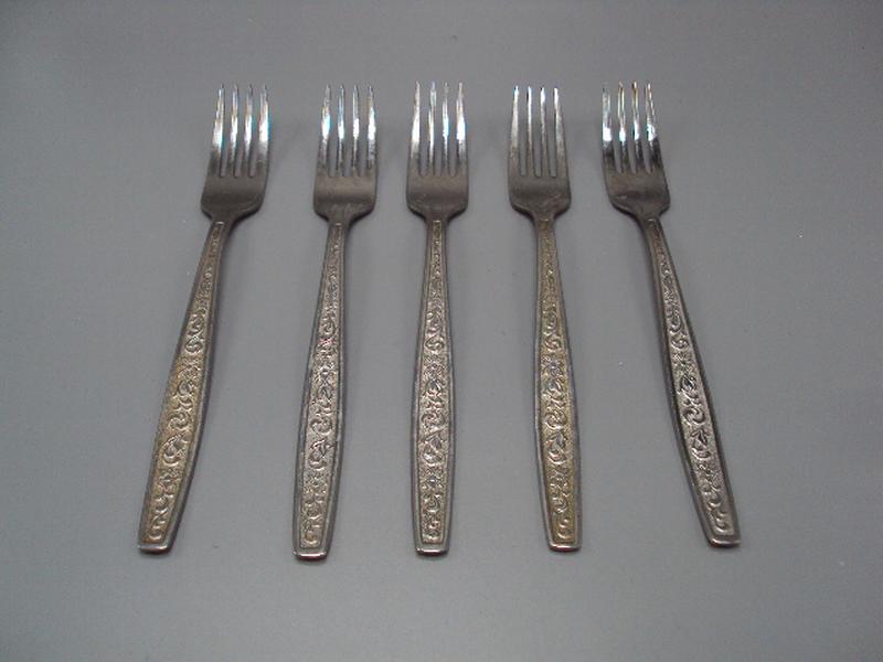 Столовые приборы вилки нерж узор цветы листья листочки нержавейка вилка 19,9 см лот 5 шт №...