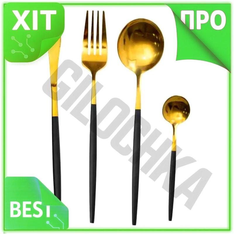 Ve набір столових приладів 24 new version предметів для 6 персон золотистий з чорним нержа...