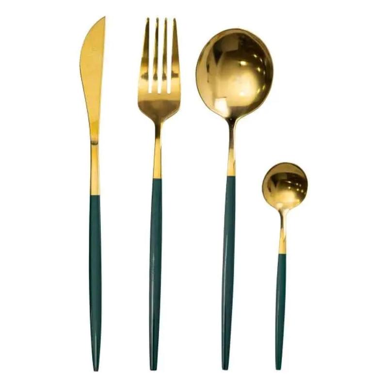 Набір столових приборів 24 предмети столовий набір на 6 персон золотистий з зеленим hp-20-...