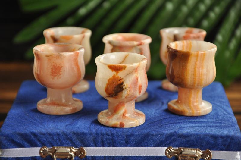 ### Матеріал: Натуральний камінь онікс Розмір чарок: Висота 4.5см, діаметр 3.5 см Об'єм - 10 ml Країна виробник: Пакистан (Ви отримуєте той колір виробу, що представлений на фото) просимо звернути увагу! коробка не несе естетичний характер, вона для транспортування!