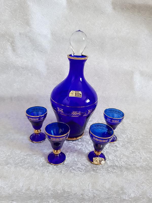Набор Bohemia hand made Чехословакия для ликёра, коньяка. Графин 550 мл, рюмки 25 мл 4 штуки. Сколов, трещин нет. На рюмках этикетки отклеены (на 3 шт). И местами стёрта позолоту. Без родной упаковки. Замеры на фото. Обмена, возврата нет. Делайте выбор осознанно. * Пересылка УкрПочтой, Новой почтой по полной предоплате на карту. * Наложенным платежом не отправляю.