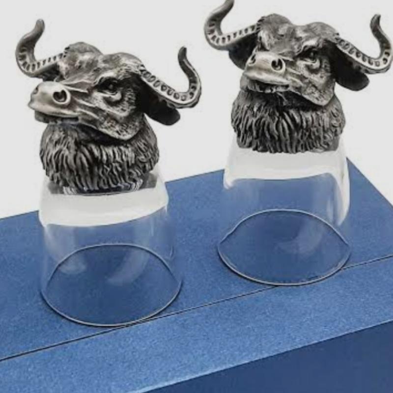 Подарунковий набір чашки буйвол (2 шт.) 50 мл сірі з олова перевертні