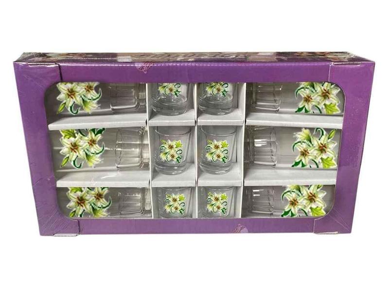 Набір 12шт (6 стак. 6 стопок) высокие белая лилия тм farglass