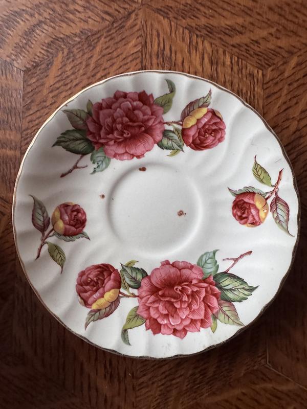 Тарілка з квітковим візерунком • Опис: Вишукана порцелянова тарілка з розписом у вигляді червоних троянд. Класичний дизайн із золотою окантовкою, що ідеально підійде для сервірування чаю або як декоративний елемент. • Стан: Добрий, є незначні сліди використання. • Розміри: Діаметр близько 12 ( піони) та 12 ( троянди) см Тарілка із зображенням повітряної кулі • Опис: Декоративна тарілка із зображенням повітряної кулі в ретро-стилі. Унікальний принт із зазначенням дати історичної події – 19.9.1784. Ідеально підійде для колекціонерів чи як подарунок. • Стан: Відмінний, без пошкоджень. • Розміри: Діаметр близько 11 см