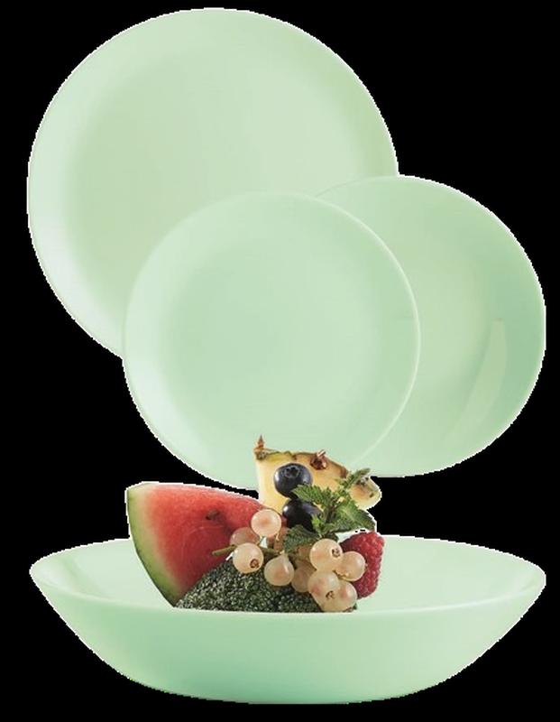 Сервіз LUMINARC DIWALI PARADISE GREEN /18 пр (V6215) - Сервіз столовий Diwali Paradise Green - Кількість персон: 6 - Матеріал: опалове скло Luminarc ® - бренд високоякісного посуду, що випускається французьким виробником посуду Arc International. Торгова марка Luminarc випускає свою продукцію з 1948 року. Її головною відмітною особливістю є якість і ударостійкість, що важливо. А досвід виробництва ударостійкого посуду Luminarc перейняла від свого попередника- фабрики з виробництва скла зі столітнім досвідом, на базі якої вона і утворилася. З кожним роком компанія удосконалює технології і покращує якість свого скла. У них вийшло створити таке високоміцне скло, якому не страшні ні удари, ні перепади температур.Також до плюсів даного матеріалу можна віднести абсолютно гладку поверхню, що перешкоджає проникненню бактерій і сторонніх запахів у посуд. Можна використовувати у мікрохвильовій печі, а такок мити в посудомийній машині. Посуд Luminarc розроблений для постійного використання, малюнок не втрачає яскравість, поверхня відмінно тримає тепло. Французька торговельна марка Luminarc - пропонує своїм покупцям різноманітні товари для приготування, зберігання і подачі на стіл. В асортименті виробника ви знайдете всі необхідні предмети для вашої кухні, які відрізняються особливою якістю і увагою до деталей. Комплектація сервізу: - Тарілка десертна 6 шт. - Тарілка обідня 6 шт. - Тарілка супова 6 шт. Особливості: - французька якість матеріалів, дизайнів і декорів; - стійкість до пошкоджень при щоденному використанні; - виготовлено із загартованого скла - самого гігієнічного матеріалу; - витримує перепади температури до 130 ° С, що дозволяє використовувати посуд в мікрохвильовій печі; - можна використовувати у посудомийній машині; - повне дотримання норм і стандартів безпеки та екологічності для споживача.