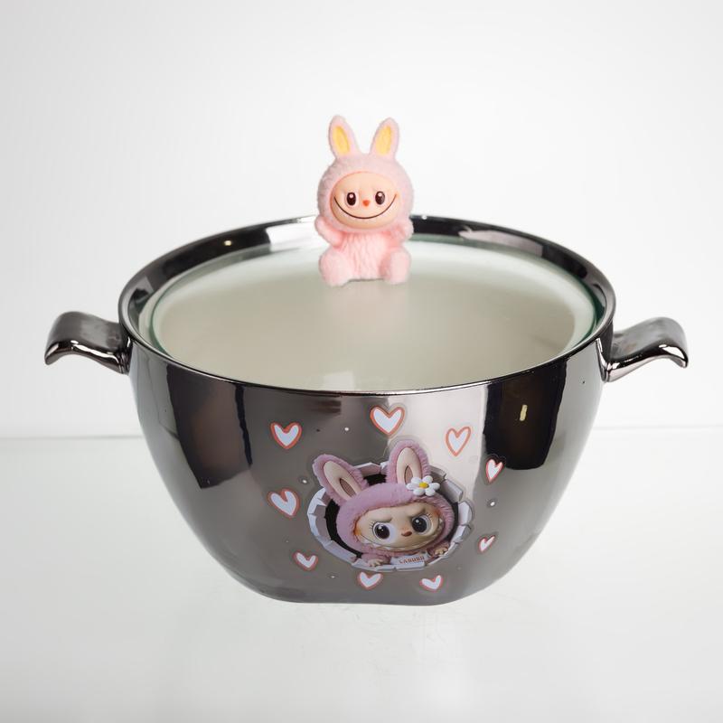 Оригінальна та стильна бульйонниця із зображенням персонажа Лабубу. Виготовлена з порцеляни з дзеркальною поверхнею, доповнена зручними ручками та кришкою зі скла. На кришці -- милий декоративний елемент у формі фігурки Labubu у рожевому костюмі з вушками, що надає виробу грайливого та унікального вигляду. Основні характеристики порцелянової бульйонниці Labubu Об'єм: 800 мл; Діаметр: 15 см; Висота: 14 см Матеріал: порцеляна, скло. Супниця Labubu створює атмосферу радості та затишку за кожним прийманням їжі. Її можна використовувати як дитячу супову тарілку, тарілку для локшини або тарілку для подавання гарячих страв. Ця супниця з ручками та кришкою стане яскравим акцентом у кухонній колекції та улюбленим посудом для її власника. Прекрасний вибір для сервірування дитячих страв, тематичних вечірок або просто для того, щоб зробити обід трохи чарівним.