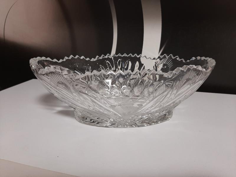 Раритетный хрусталь 90-х годов. Салатница большая: ширина 15 см, длинна 28 см, высота 10 см. Сервантное хранение.