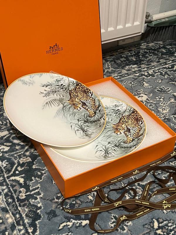 Нові 2 тарілки від Hermes з дорогої колекції Carnets d’Equateur. Купувались в Відні, оригінал. Ціна на сайті за 1-250 євро. Стан ідеальний, комплект повний з упаковкою та стрічкою. В моїх оголошеннях є посуд від Hermes, якщо цікаво подивіться. Відправляю поштою, по всім питання пишіть в повідомлення