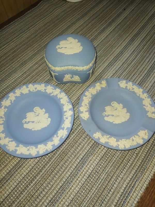 три предмета из одной серии голубого бисквита шкатулки, попельничка и блюдечко, винтаж 1970 лет