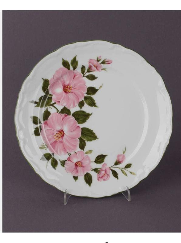 Фарфор, декорування перенесенням ( не ручна розмальовка) Ободок зелений. Маю 11шт Ціна вказана за 1штуку, за 1 тарілку