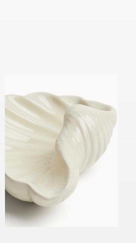 Тарілочка від H&M home Глазурована керамічна салатниця у формі неправильної мушлі. Висота: 6 см, ширина: 11,5 см, довжина: 15 см. Артикул: 1268388001 Вага: 378 г