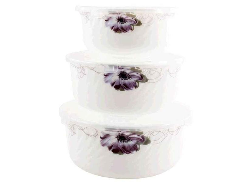 Набор салатников с крышкой 3шт 14х16х19см фиалка 61008/s тм lumines
