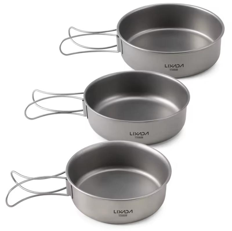 Набір тарілок з титану LIXADA 3 шт Виробник: LIXADA Матеріал: титан Розміри: Малий: 97 * 33 мм Середній: 105 * 33 мм Великий 113 * 34 мм Загальна вага: 109 г Колір: титан (оригінальний колір). Легкість і компактність особливо цінуватися під час довгих подорожей і походів, коли кожен грам має значення! Чому саме титан? Титан -- дуже твердий метал. Він у 12 разів твердіший за алюміній, в 4 рази -- за залізо та мідь. Титан - легкий і міцний метал. Він утричі легший за сталь, майже вдвічі легший за залізо і лише в півтора рази важчий за алюміній. А ось у міцності титан не поступається сталі: він у півтора рази міцніший. Титан - не іржавіє. Посуд добре тримає тепло і не вступає в реакцію з їжею і напоями, а пальники з титану дуже надійні і довговічні, якщо не загубите передасте у спадок:) В наявності великий вибір: набори посуду, каструлі, казанки, сковорідки, чайники, чашки, чарки, стакани, тарілки, фільтри для чаю і кави, столові прибори, фляги і пляшки, термоси, газові пальники, спиртівки, решітки гриль, кілочки, лопатки, щепочниці з титану різних розмірів. Тож, якщо саме цей товар Вам не підходить, напишіть на сайті і я надішлю Вам посилання де є весь перелік виробів з титану, і можливо підкажу що краще для ваших потреб. Приємних покупок:)