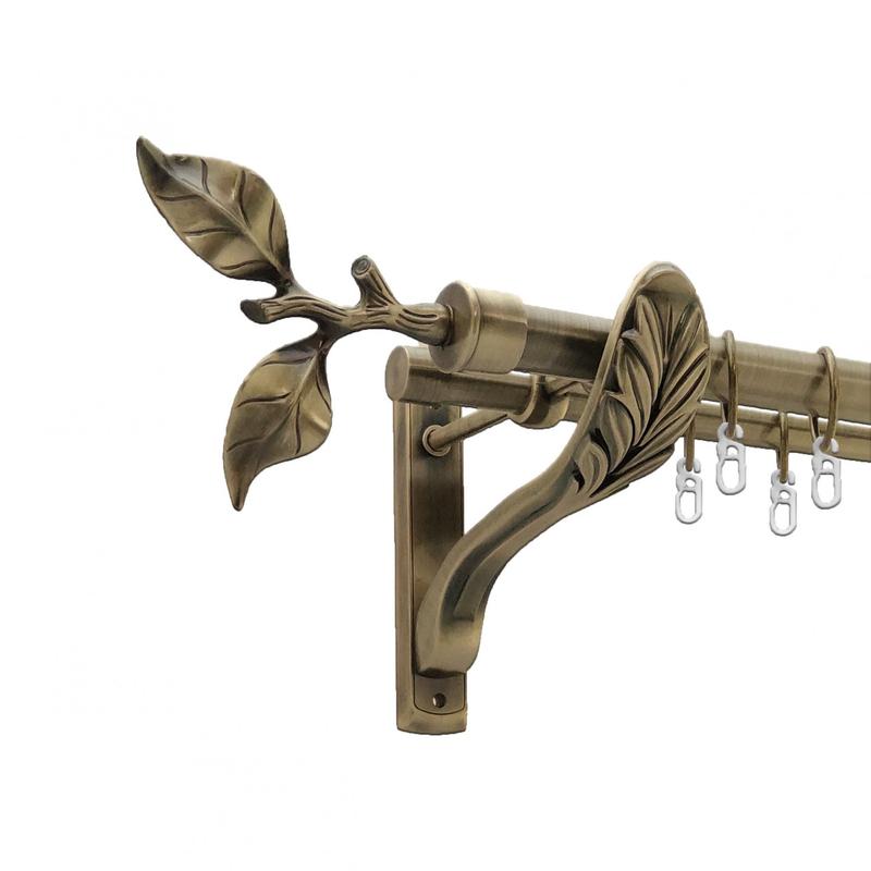 Карниз для штор металевий дворядний ретро 25\19 антико лист троянди 160 см