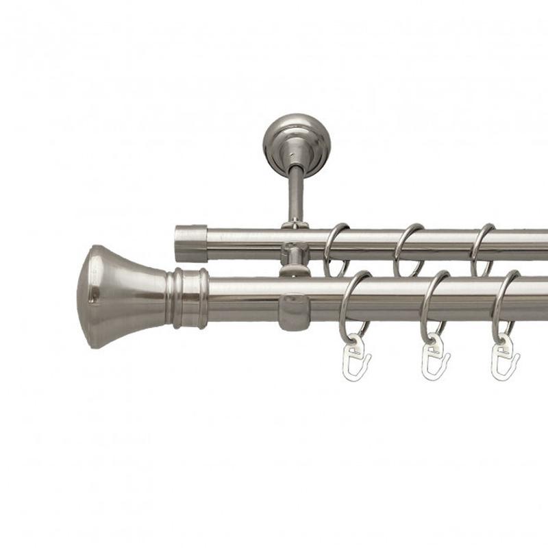 Карниз для штор подвійний 19-25мм Люксор металевий під ковку. В комплект входять:труба 25мм гладка,труба 19мм гладка,власники,наконечники, заглушки,кільця і гачки. Колірна гамма:антіко бронза,сатин матовий сірий,сталь,золото,чорний онікс блиск,біле золото,мідь. При виборі товару,Вам треба вказати довжину карниза.Якщо Ви хочете замовити додатково якісь деталі карниза,вкажіть це при замовленні або свяжитест з нами.Чекаємо Ваших замовлень. З повагою,фірма Баваро.