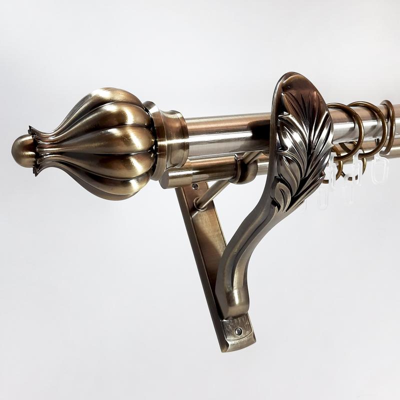 Карниз для штор orvit таджа металевий дворядний ретро гладка труба кільце металеве антик 2...