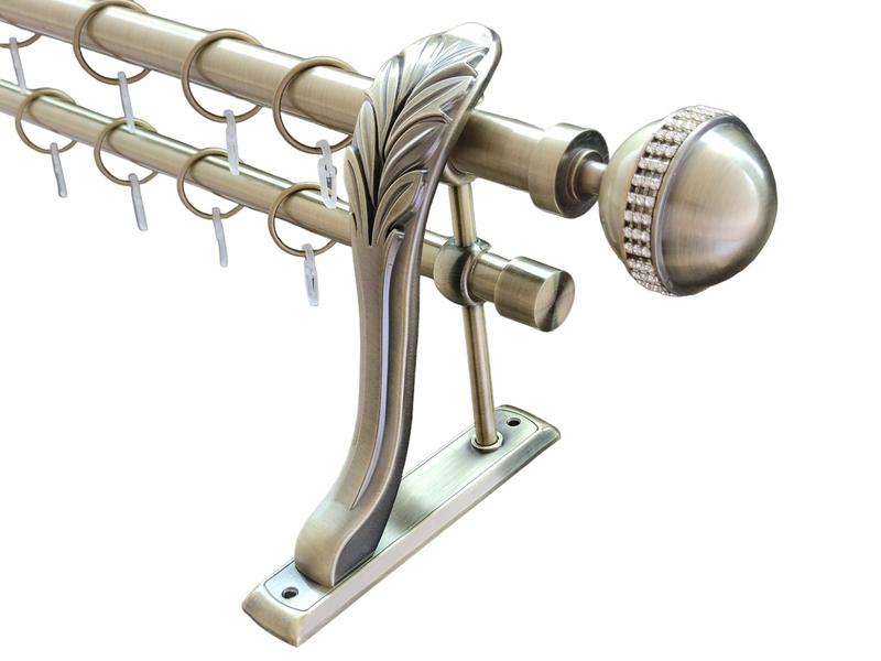 Карниз для штор orvit авея металевий дворядний ретро гладка труба кільце металеве антик 25...