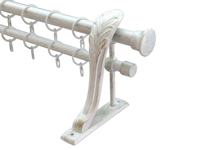 Карниз для штор orvit дуо металевий дворядний ретро гладка труба кільце металеве біле золо...
