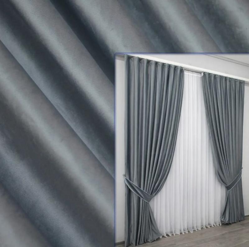 Штори в спальню, вітальню (2шт. 1,5х2,75 м) оксамит. колір сірий