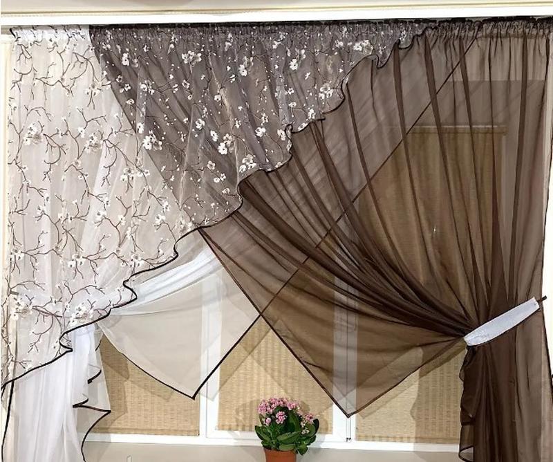 Фіранки підійдуть як на кухонне вікно, балкон, або в інше приміщення де потрібно не велика висота. Тканина, яка використовується в комплекті добре стирається, не линяє, і прослужить досить довго. Підійде на карниз 2 м. Ширина в розтягнутому вигляді 3.5 м. Довжина 1.8 м. До комплекту пришита тасьма з петельками. Тканина: шифон та органза. Інтернет магазин "Чемодан текстилю" пропонує великий вибір товарів за низькою ціною. Ви можете перейти по посиланню на наш сайт і подивитися весь асортимент наших товарів ************************** Якщо вам подобається ця модель, але потрібно інші розміри або колір, звертайтеся за телефонами: +38********** або **********, кожен день.