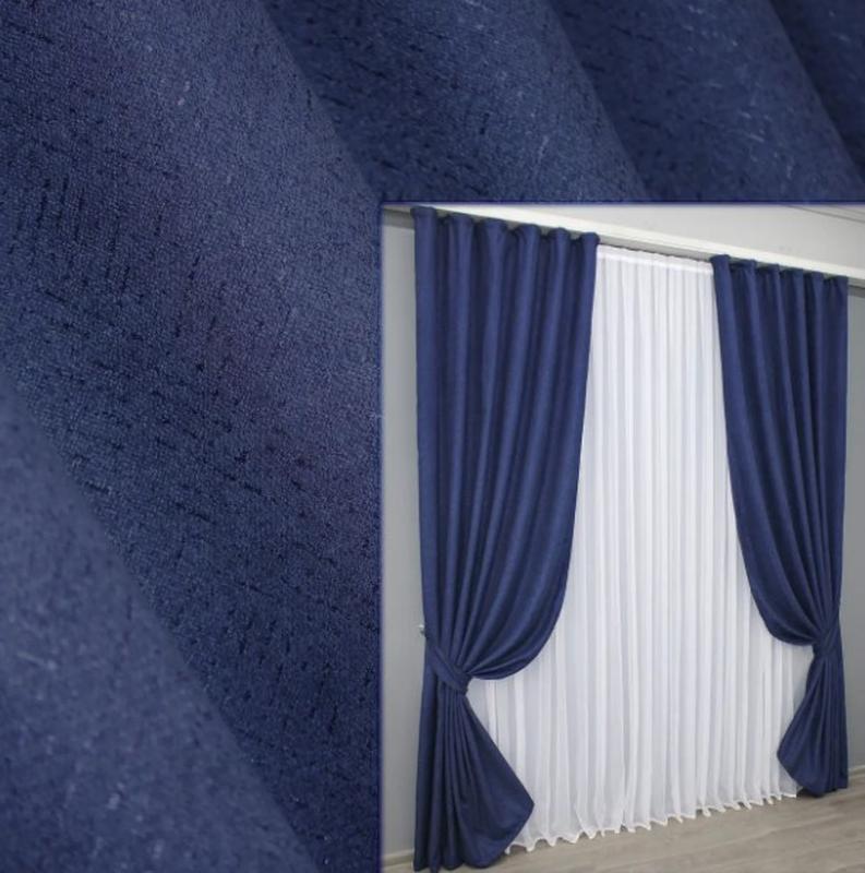 Штори в вітальню, спальню льон (2шт. 1,5х2,7м). колір синій