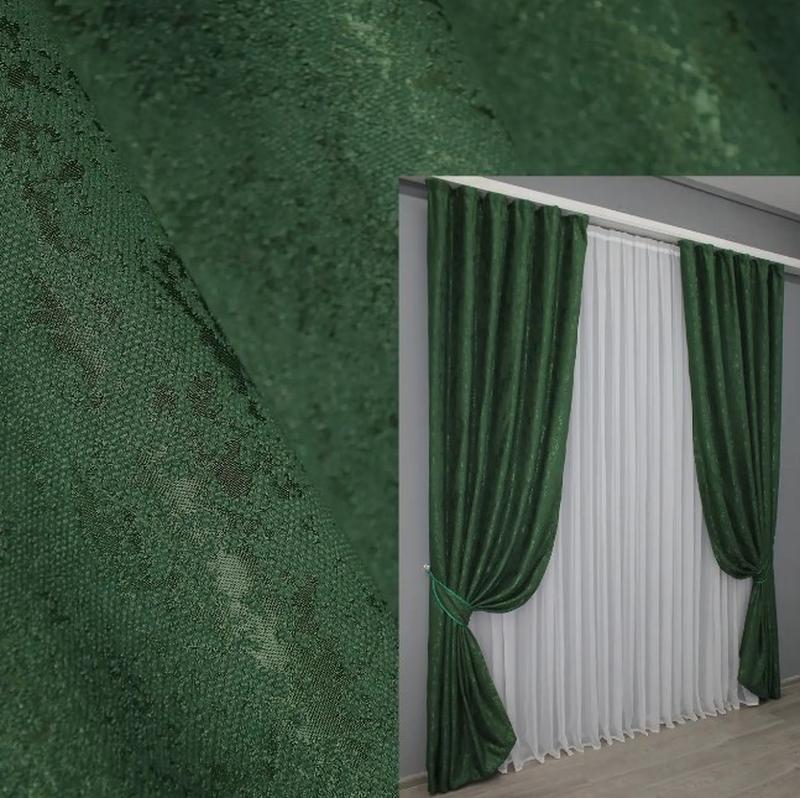 Штори в вітальню, спальню льон (2шт. 1,5х2,7м) "pavliani". колір зелений