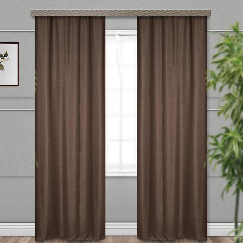 Дуже стильні та сучасні портьєри Рогожка в шоколадному кольорі. Практичні у догляді. Ширина кожної штори 2 метри в розтягнутому вигляді. Вгорі затягуються тасьмою для гачків. Висота підшивається під вашу без доплати. Захист від сонця 70-80%.
