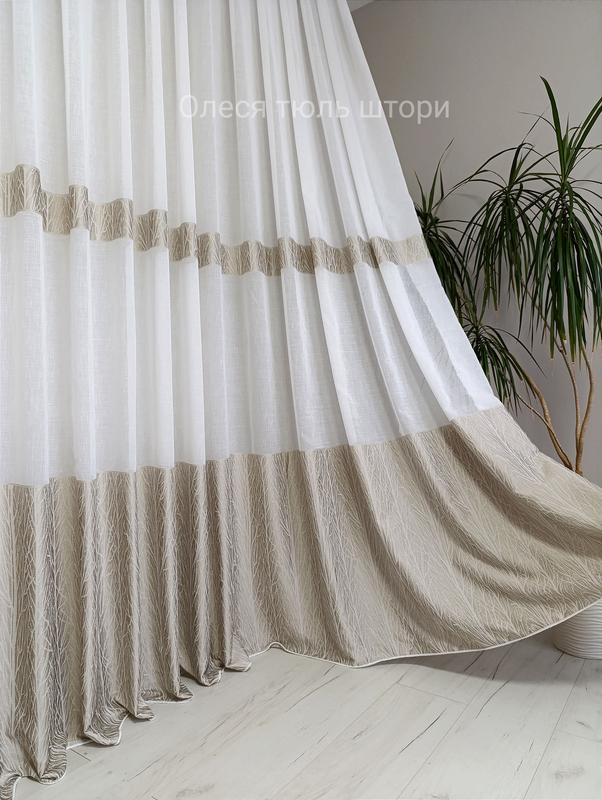 Тюль преміум класу по доступній ціні 👍 Основа льон з додаванням шовкової нитки , щільні жакардової смужки зі стильним орнаментом 🔥 Стильно і сучасно виглядає в інтер'єрі, приємно розсіює світло і створює затишок в оселі 😍 Тюль дуже гарної якості, стійкий до впливу сонячних променів, не змінює колір, гарно переться , на дотик м'який і шовковистий 👍 В наявності є з сірою смужкою, беж і білою смужкою і венге ❗ Висота 3м, набір по ширині Є послуга пошиття по вашим розмірам Ціна вказана за 1 метр погонний ❗ Виробник Туреччина 🇹🇷