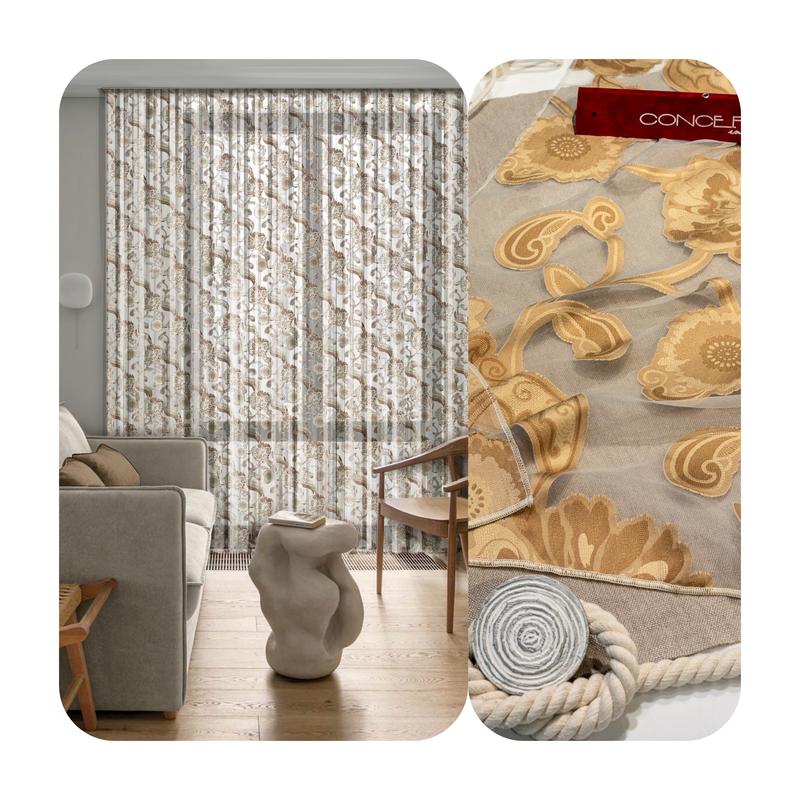 Тюль в золотисто коричневі квіти на органзі, висота 2,9 м. Бельгія. Ціна за метр. Виготовим по вашим розмірам