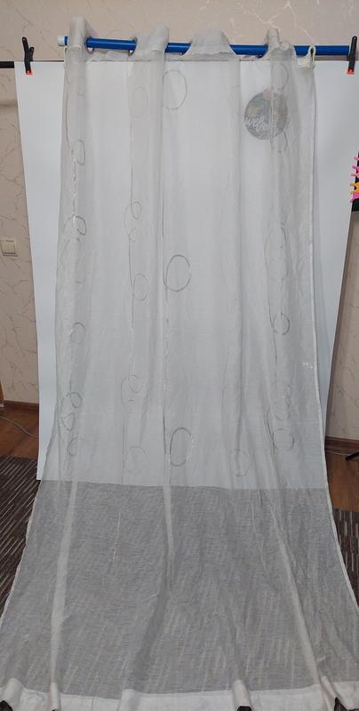 Тюль. Висота 235 см, ширина 138 см. На люверсах. Є дефекти: біля двох люверсів тканина розторочилась і є пляма від водомульсіонки (показала на останніх фото).