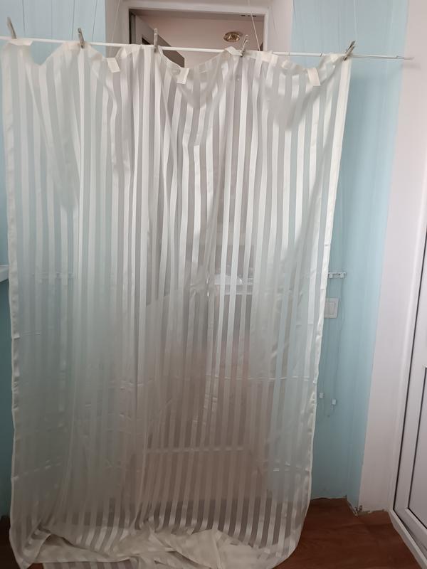 2 полотна готового тюлю ТСМ в смужку кремового відтінку 139*240 без шлеєк в стані нових. В шкафу лежав, не використовувала.Довжина шлеєк 8*2=16 см. ширина 2,5 см. Склад:100% поліестер. Тюль пошитий, готовий до використання.