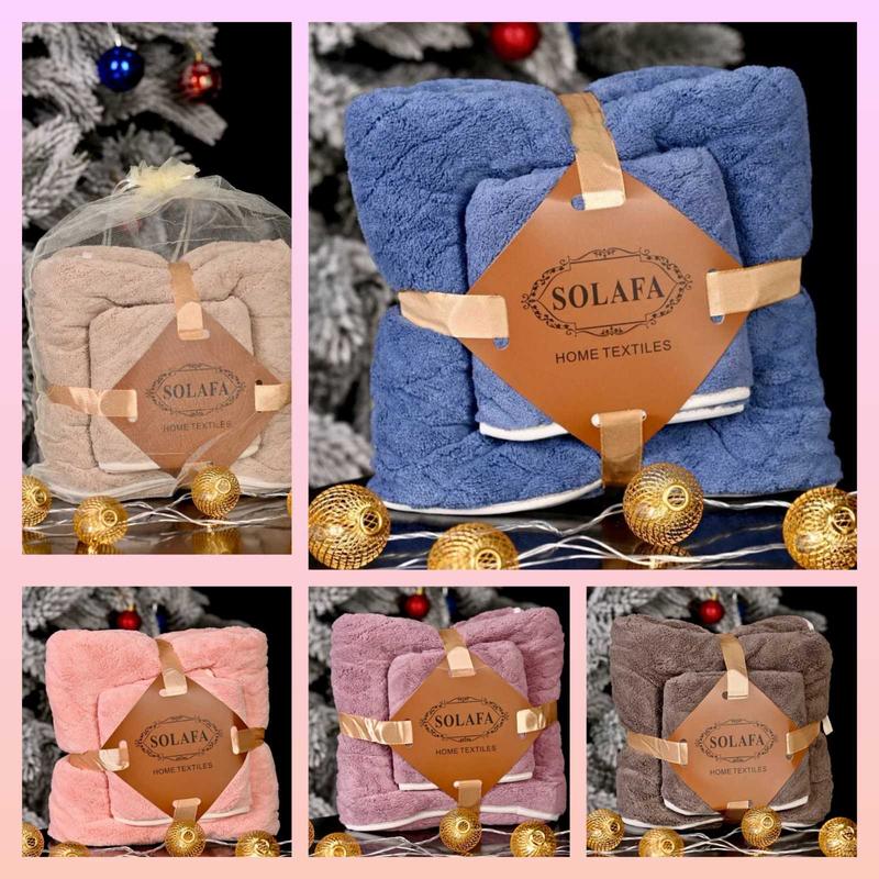 Матеріал: мікрофібра Колір: в асортименті Виміри: Лицьове 33*72 см Банний 67*133 см У наборі 2 рушники, упаковані в подарунковий мішечок Кольори: синій, бєж, бузковий