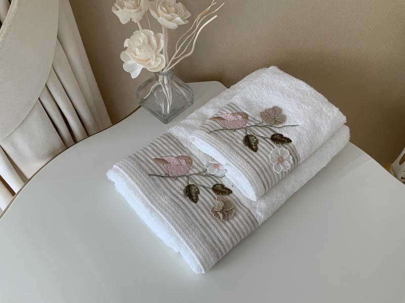 Комплект рушників для лиця 50х70 та для рук 30х50. Бавовна 100%, щільність 450 гр. Виробник Турція. Упаковка подарункова -мішочок з органзи.