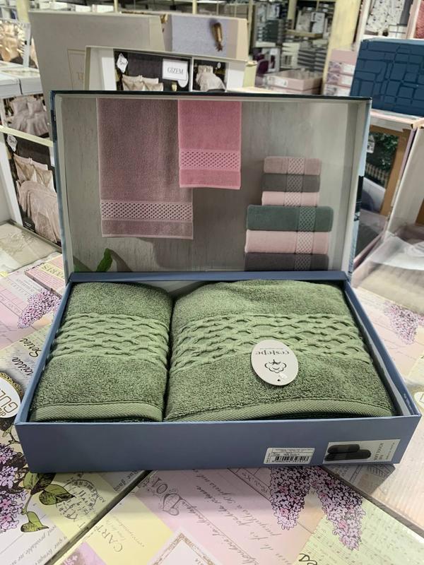 Наборы полотенец Турция: Высокое качество и мягкость, идеально для ежедневного использования или подарка! • Размеры: 50 × 90 см (для обличчя) 70 × 140 см (для тела)