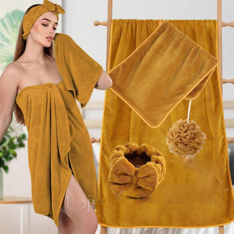 Набор банных полотенец микрофибра 4 в 1 подарочный Банный комплект из микрофибры: изумруд-изумруд, ириска, персик и горчица - баня (1,4 x 0,7) - кухня (0,35 x 0,75) - губка - повязка на голову Хорошо упаковано в подарочной сумке