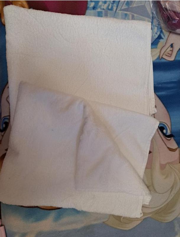 Два больших банных полотенца чисто белого цвета 140×95 c незначительным дефектом на фото указана. Цена за одно 200гр Два за 300