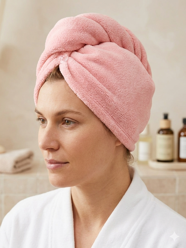 рушник-тюрбан (також відомий як чалма) для сушіння волосся. Це популярний аксесуар, призначений для швидкого та дбайливого сушіння волосся після душу, сауни або водних процедур. колір рожевий ,в наявності є 2 моделі ,дивіться фото Матеріал: виготовляється з мікрофібри яка має відмінні поглинаючі властивості. Бережний догляд: М'який матеріал запобігає пошкодженню волосся і допомагає зберегти його блиск і еластичність. Зручність фіксації: модель оснащена гудзиком і петелькою, що дозволяє надійно закріпити тюрбан на голові, звільняючи руки для інших косметичних процедур, таких як нанесення макіяжу. без нюансів ,як новий
