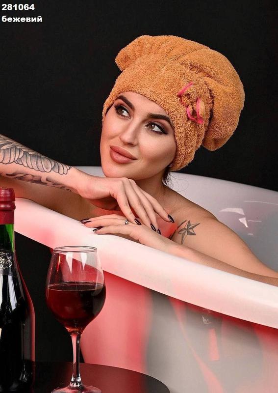 Рушник-шапочка чалма ⚜️Країна виробник: Китай ⚜️Склад: мікрофібра Колір: жовтий, пудра, синій, коричневий. ЗАМІРИ: Ширина - 23 см, в спокійному стані 18 см, у розтягнутому 32 Код 1299.