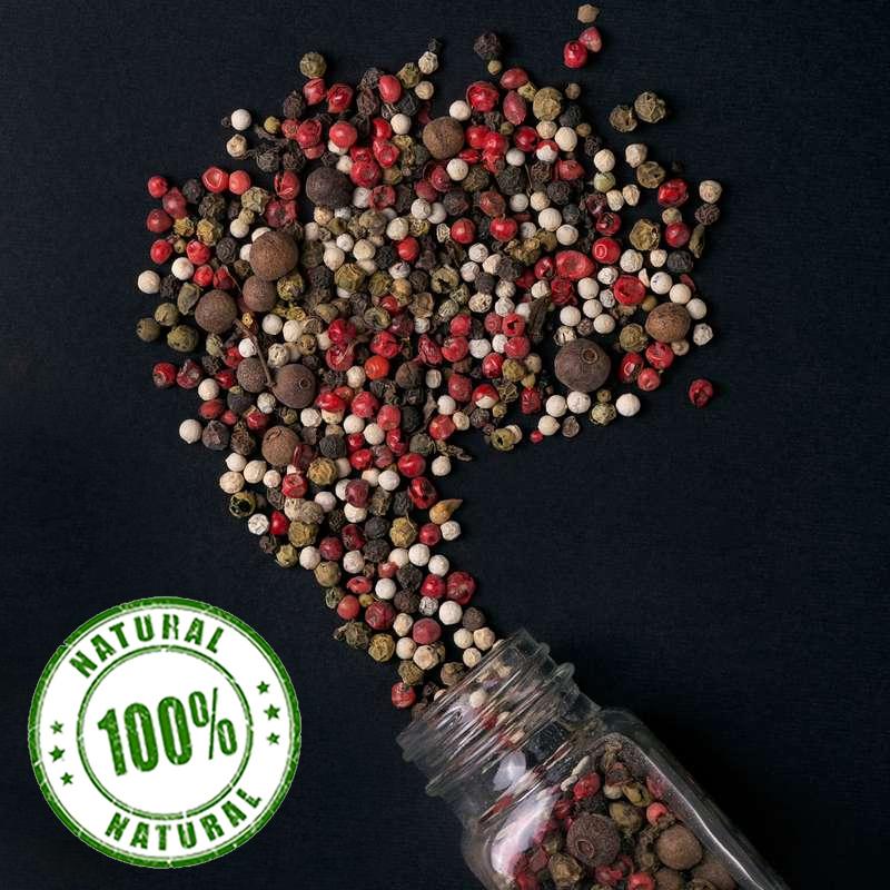 Суміш “5 перців” — ароматна, м’яко-пікантна універсальна приправа, яка вдало підходить до найрізноманітніших страв: м’яса, риби, птиці, овочів, грибів, супів, соусів, салатів тощо. Завдяки рівномірному співвідношенню п’яти видів перцю (по 20% кожного), суміш має глибокий, багатогранний смак із яскравим ароматом. Рекомендується подрібнювати безпосередньо перед використанням — це дозволяє максимально зберегти всі нотки прянощів. Склад: духмяний перець, рожевий перець, зелений перець, білий перець, чорний перець. Харчова та енергетична цінність на 100 г: 🔹 Калорійність — 244,0 ккал 🔹 Білки — 5,8 г 🔹 Жири — 2,68 г 🔹 Вуглеводи — 38,21 г Походження інгредієнтів: Бразилія, Китай, Вʼєтнам, Мексика.