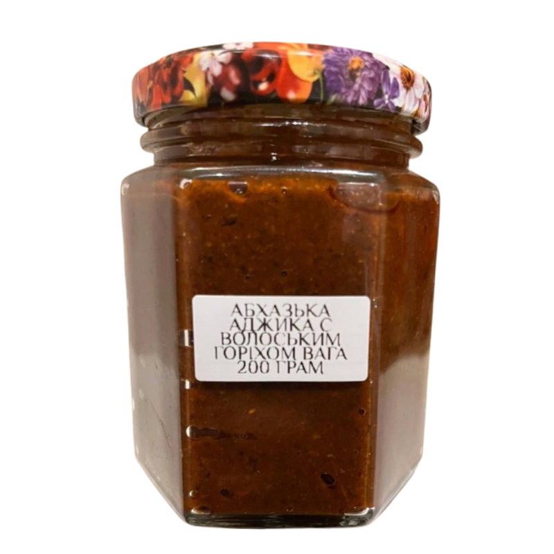 Аджика абхаззка с грецкими орехами сыра, острая, в пищевой стеклянной банке, 200 мл, 1 шт