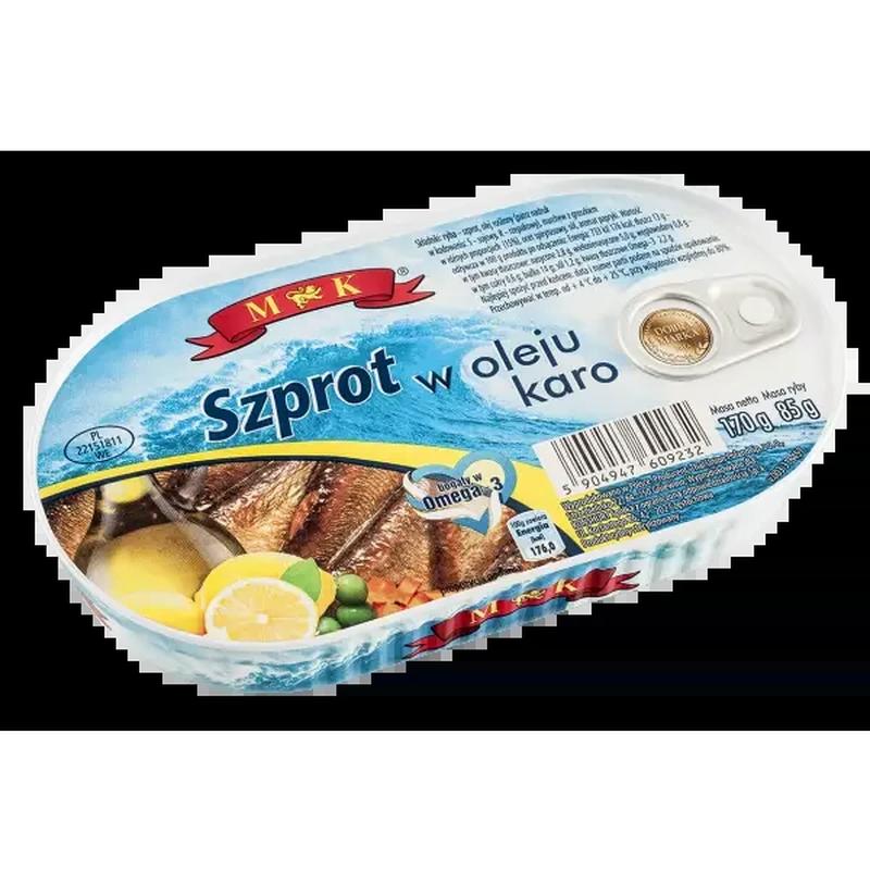 Шпроти в олії каро mk karo, 170 г у олії, польща, з/б, вітамін омега 3