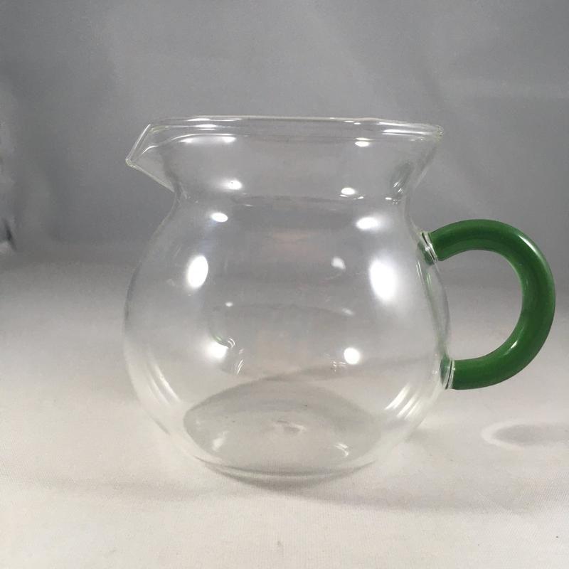 Чахай — це проміжна посудина, куди зливається заварений чай з чайничка (або гайвані), перш ніж розлити його по піалкам. Чахай виконує три важливі функції. По порядку: Перша. У чахай залишається осад. Коли Ви розливаєте чай з гайвані або чайничка, яким би якісним і великолистовим не був чай, в ньому завжди присутня дрібна фракція — чаїнки. Коли ви переливаете чай в чахай, чаїнки осідають на дно. А після цього з чахай по піалам Ви розливаєте уже прозорий настій. Друга. Користуючись чахаєм, Ви не скривдите нікого з своїх друзів. Якщо ви заварюєте чай для компанії, скажімо, з чотирьох осіб, то розлити всім порівну прямо з гайвані — практично ніколи не виходить. Зазвичай виходять три повні піалочки і ще одна, заповнена наполовину. Все це тому, що гайвань закрита кришкою, і Ви не бачите, скільки настою залишилося всередині. Але цього ніколи не станеться, якщо ви використовуєте чахай. І третя функція. В чахай рівномірно змішується настій і всі учасники чайної церемонії мають можливість спостерігати за глибиною кольору отриманого чайного настою. Зручний скляний чахай класичноі форми з ручкою зеленого кольору. Об'єм 250 мл. Має гарний пролив.