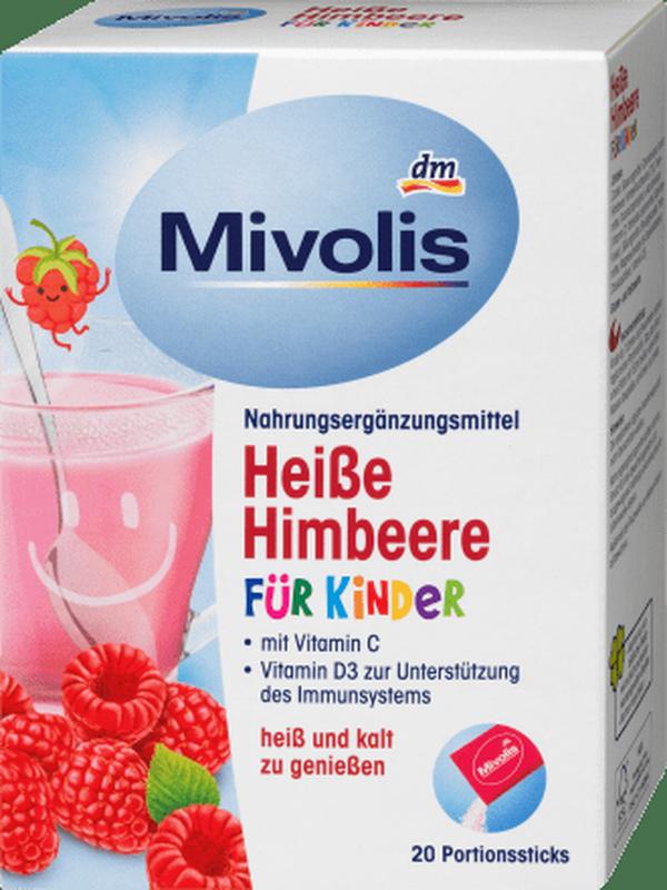Малиновий чай для імунітету з вітаміном с та d3 для дітей mivolis kindergetränk 20 шт 100...