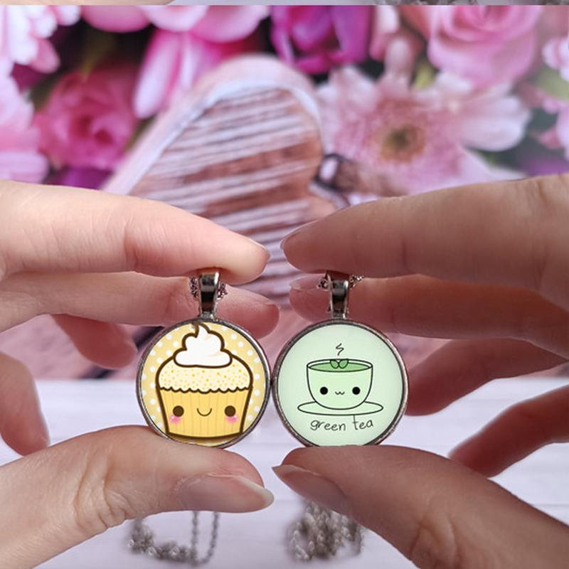 Парні кулони Кекс та чай 2 Милі парні кулони додадуть милоти та няшності Діаметр кулона 2,2 см Довжина ланцюжка 50 см. Самі ланки з нержавіючої сталі, так що ланцюжок не потемніє з часом На вибір два види основ - із звичайного металу, покритого родієм для запобігання швидкому потемнінню/окисленню/чорнінню та нержавіючої сталі - не поржавіє, не потемніє Є парні кулони й по іншим тематикам Всі прикраси робляться вручну, тож відправка протягом 1-5 днів. При замовленні кажу дату відправки і якщо потрібно терміново, можу запропонувати заміну - інше зображення або розмір/метал, вид прикраси Будуть питання, звертайся, буду рада допомогти