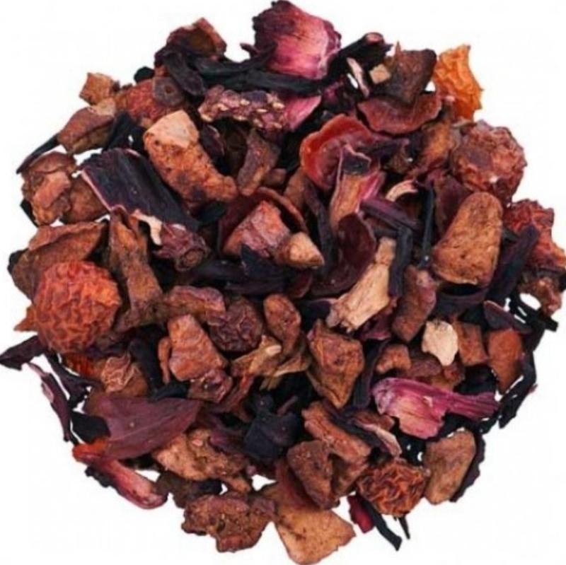 Фруктова суміш зі смаком полуниці з вершками.Скад: Гібіскус, шматочки яблука і полуниці ,шматочки шипшини.