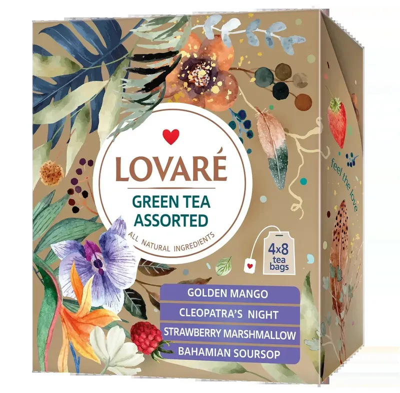 Чай lovare асорті зелений пакетований 4 види по 8 шт.