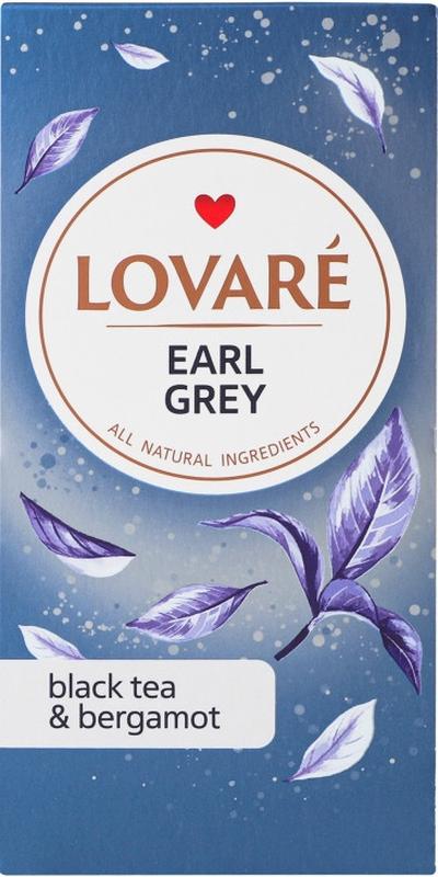 Пакетированный черный цейлонский чай Lovare Earl Grey с маслом бергамота в индивидуальных конвертах для любителей классического чая.
