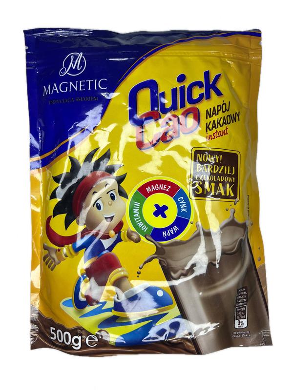 Какао напій Magnetic Quick Cao - смачний розчинний напій на основі какао та цукру, збачений вітамінно-мінеральним комплексом. Дуже подобається як дорослим, так і дітям. Можна готувати як з холодним, так і з гарячим молоком. Має вираженний шоколадний смак.